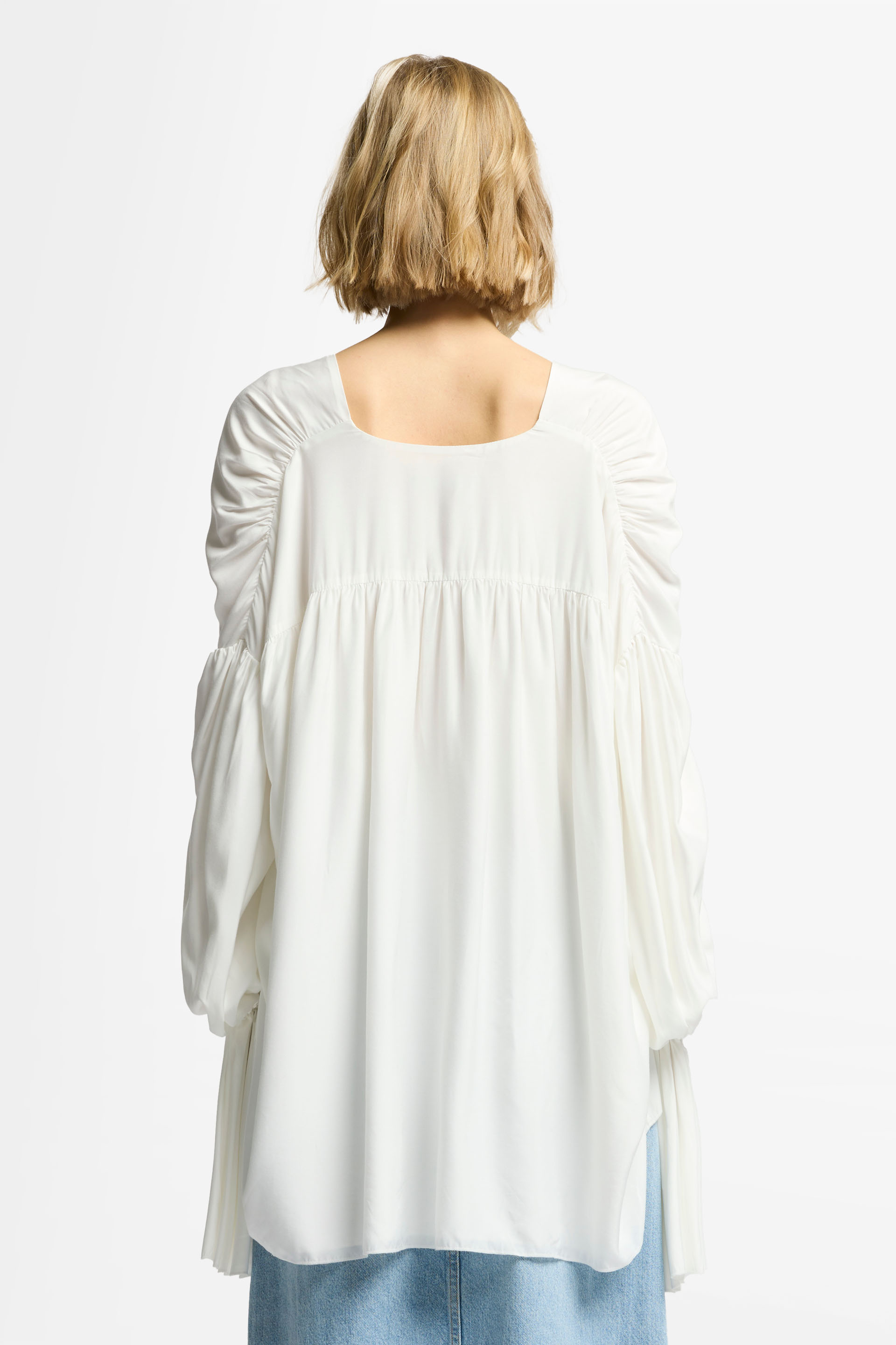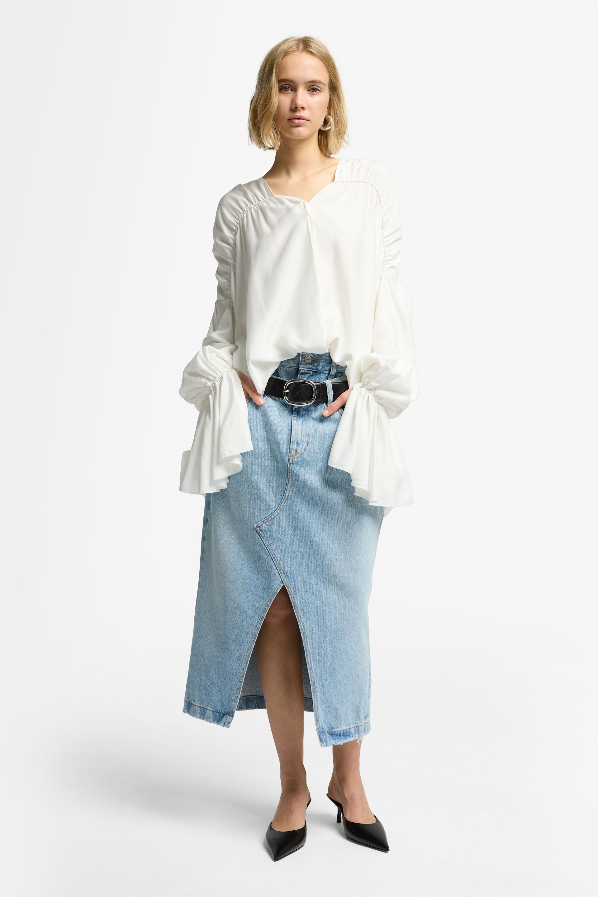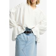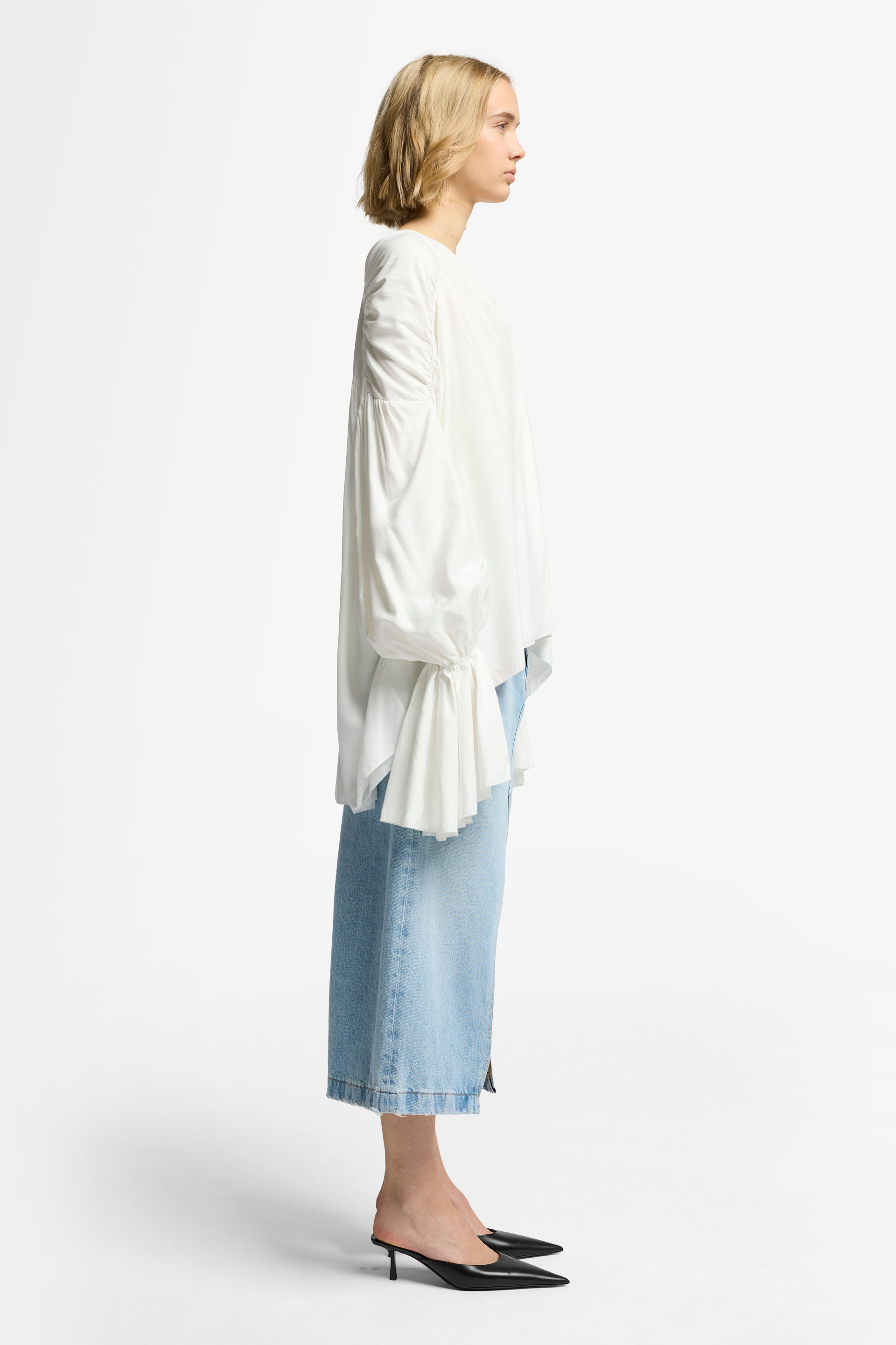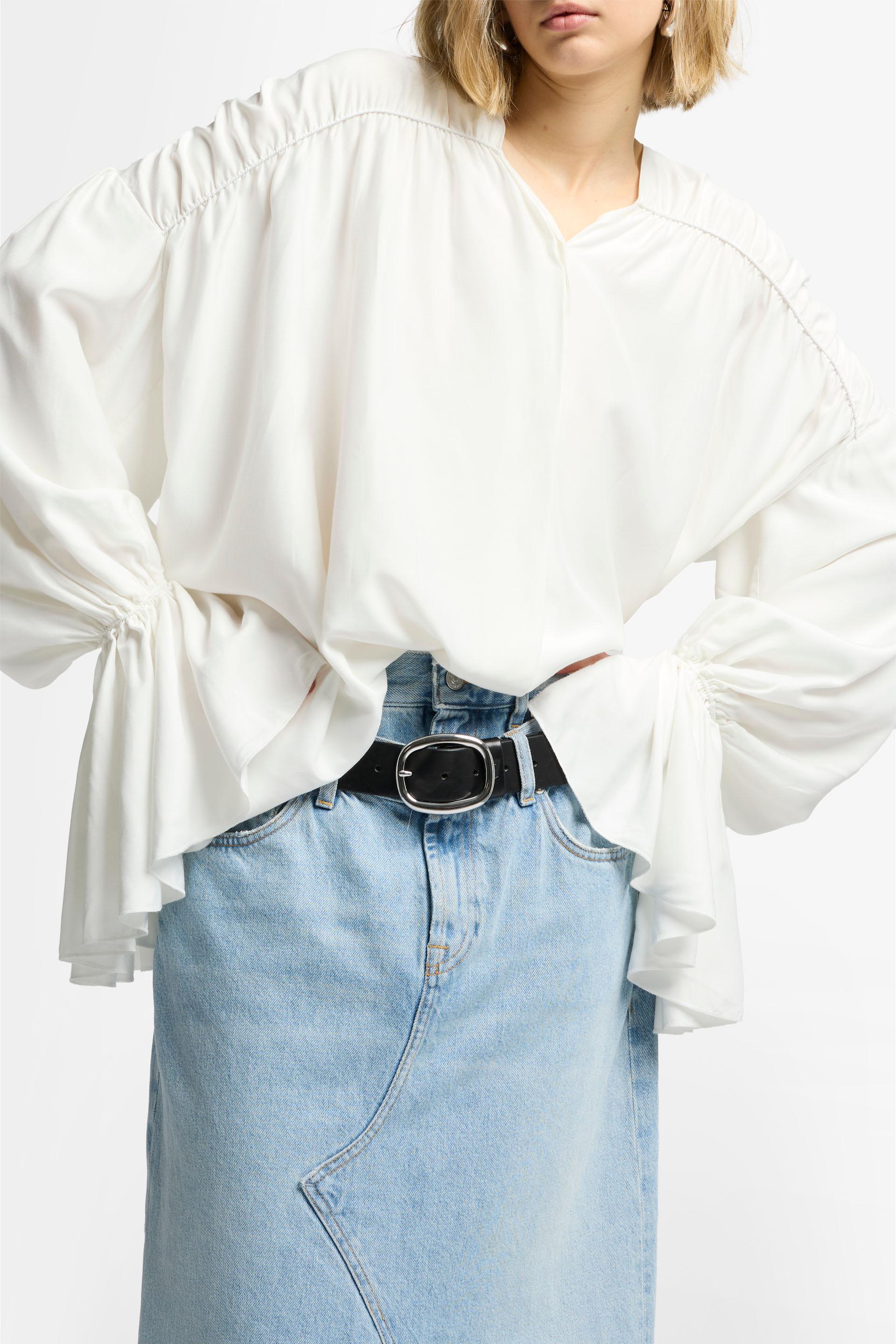 La camisa Ariel de inspiración setentera luce una silueta vaporosa y mangas acampanadas a partir de la muñeca. Consigue un look elegante sin esfuerzo al combinarla con una falda vaquera de tiro alto y mules de punta fina.
