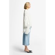 Se adapta como: drapeado sin esfuerzo, con una silueta ligeramente extragrande que flota alrededor del cuerpo, equilibrando suavidad con estructura.