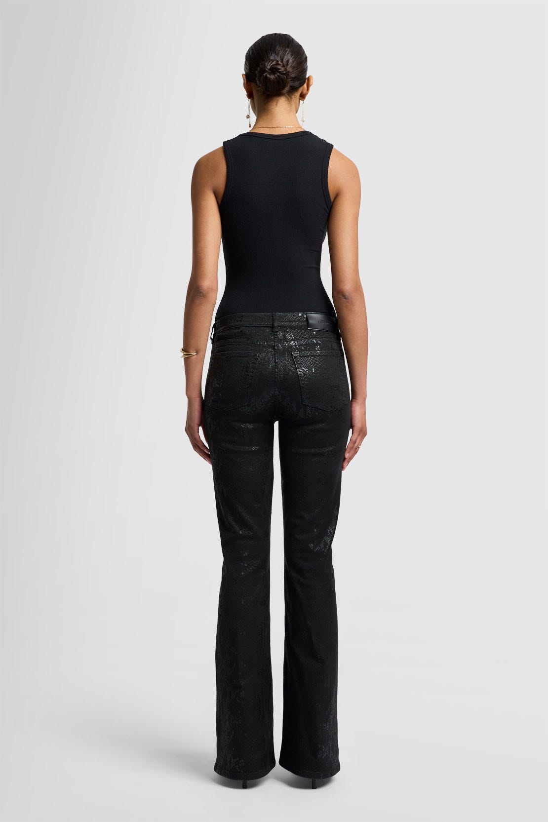 En negro con estampado de serpiente a tono, los jeans HW Ali son la base perfecta para looks completamente negros.