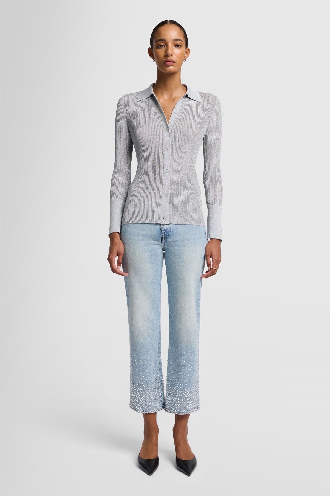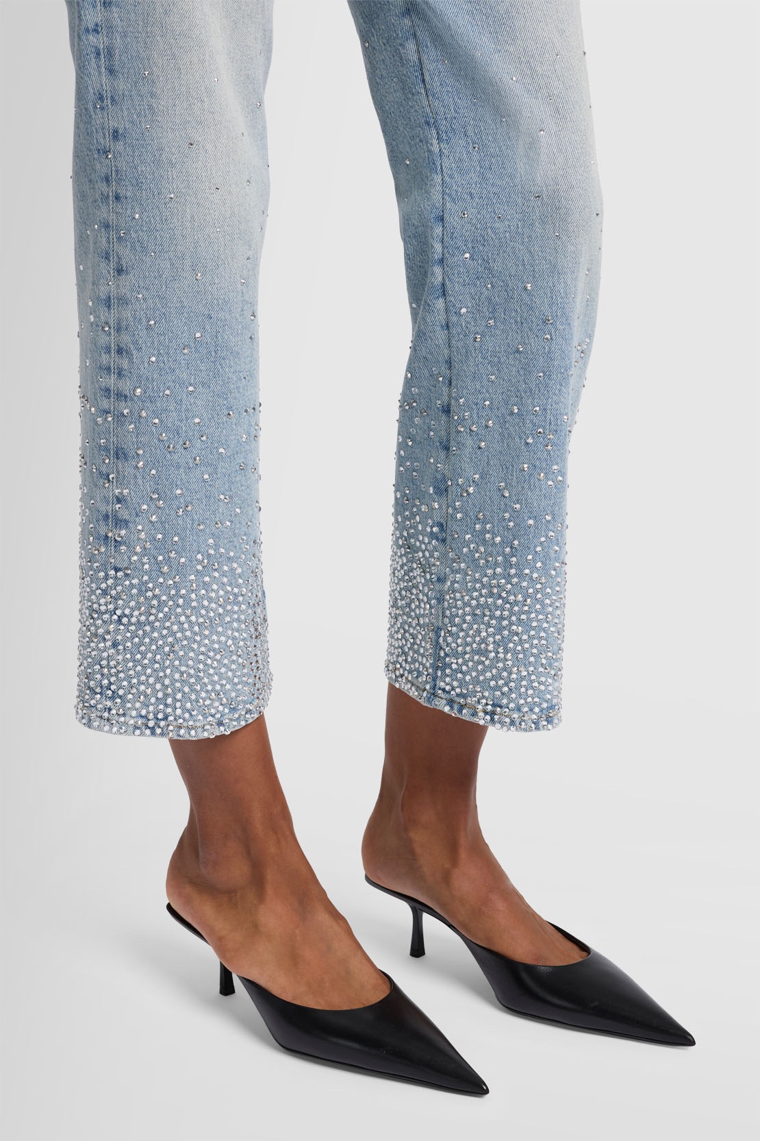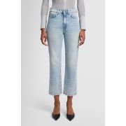 Adornados con cristales en cascada en los bajos, los jeans Logan Stovepipe irradian un glamour natural. Están confeccionados en denim azul claro con lavado vintage, tiro alto y perneras rectas. Combínalos para la noche con un suéter metalizado y mules de punta. Los jeans 7 For All Mankind están confeccionados con telas de primera calidad.