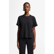 Esta camiseta, confeccionada en un tejido ligero de mezcla de algodón y lino, es perfecta para los meses más cálidos. Destaca por un diseño de manga corta con cuello redondo, clásico y corte amplio. Ponte esta versión negra con vaqueros acampanados y una sobrecamisa con efecto desteñido.