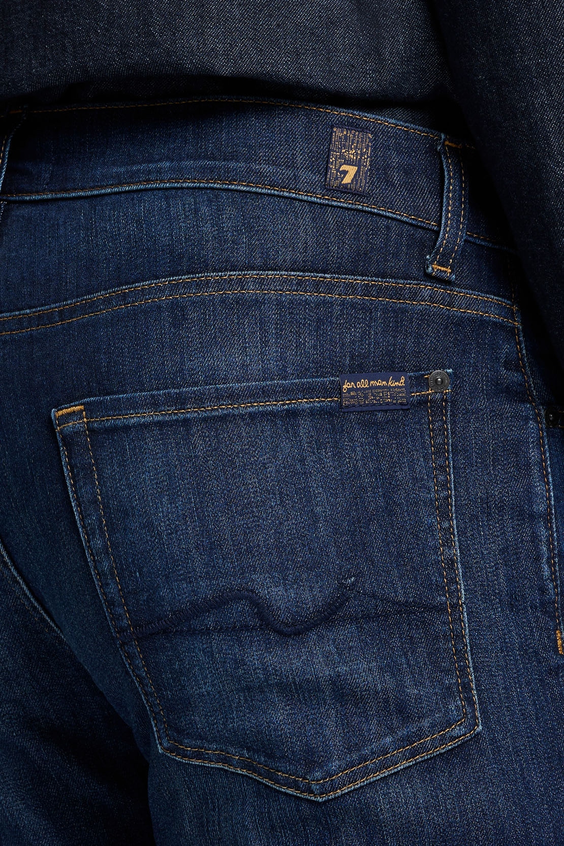 Los jeans Austyn se distinguen por sus piernas rectas y relajadas, cintura media y el clásico detalle de cinco bolsillos. Este par está confeccionado en denim Airweft azul oscuro, con descolorido y efecto deshilachado para un acabado auténtico. Úsalos a diario con una camiseta blanca y un suéter sencillo. Los jeans 7 For All Mankind están confeccionados con telas de primera calidad.
