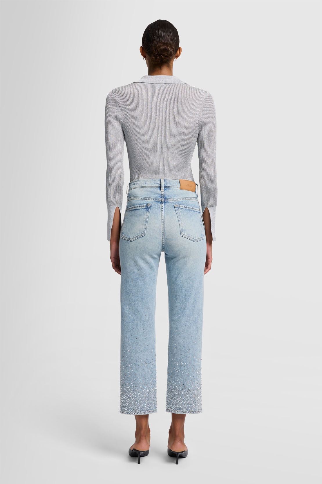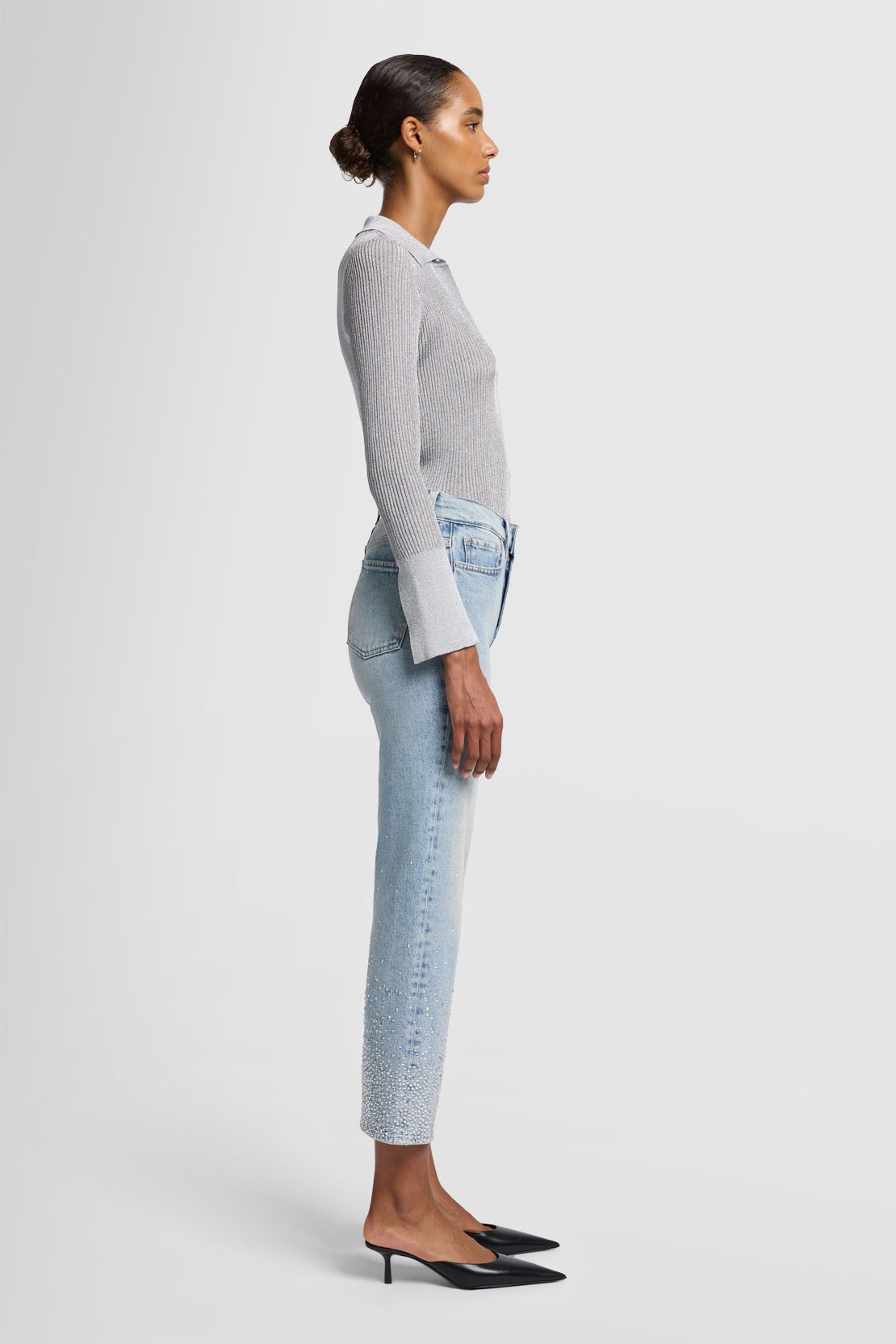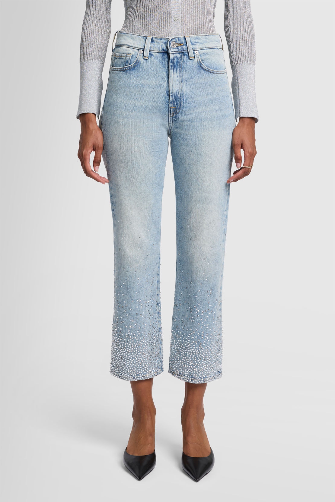 Adornados con cristales en cascada en los bajos, los jeans Logan Stovepipe irradian un glamour natural. Están confeccionados en denim azul claro con lavado vintage, tiro alto y perneras rectas. Combínalos para la noche con un suéter metalizado y mules de punta. Los jeans 7 For All Mankind están confeccionados con telas de primera calidad.