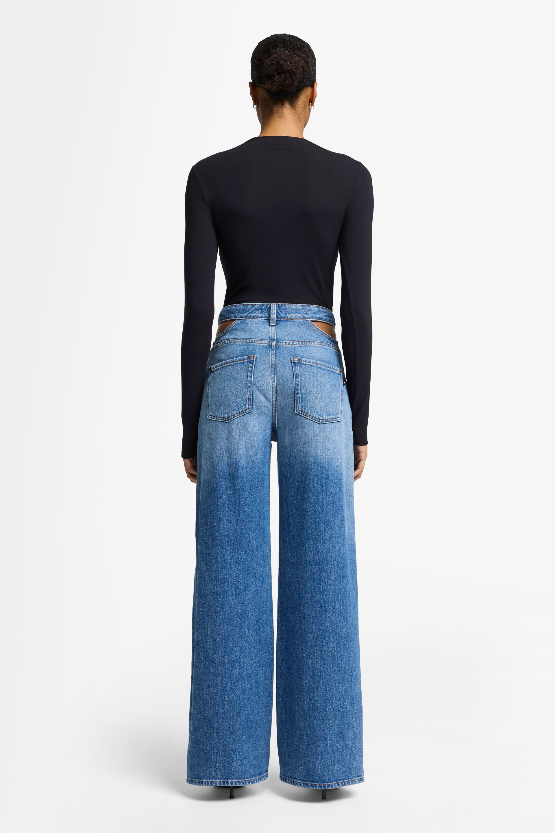 Detalles recortados en las caderas para darle un toque inesperado y vanguardista.