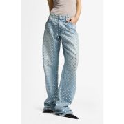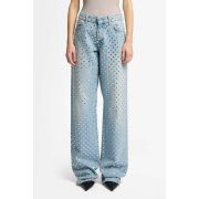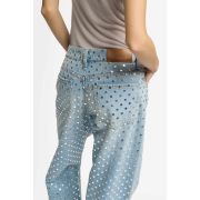 Se adapta como: Un pantalón clásico de pierna recta con un ajuste relajado en la pierna, realzado por atrevidos detalles de tachuelas en toda la prenda.