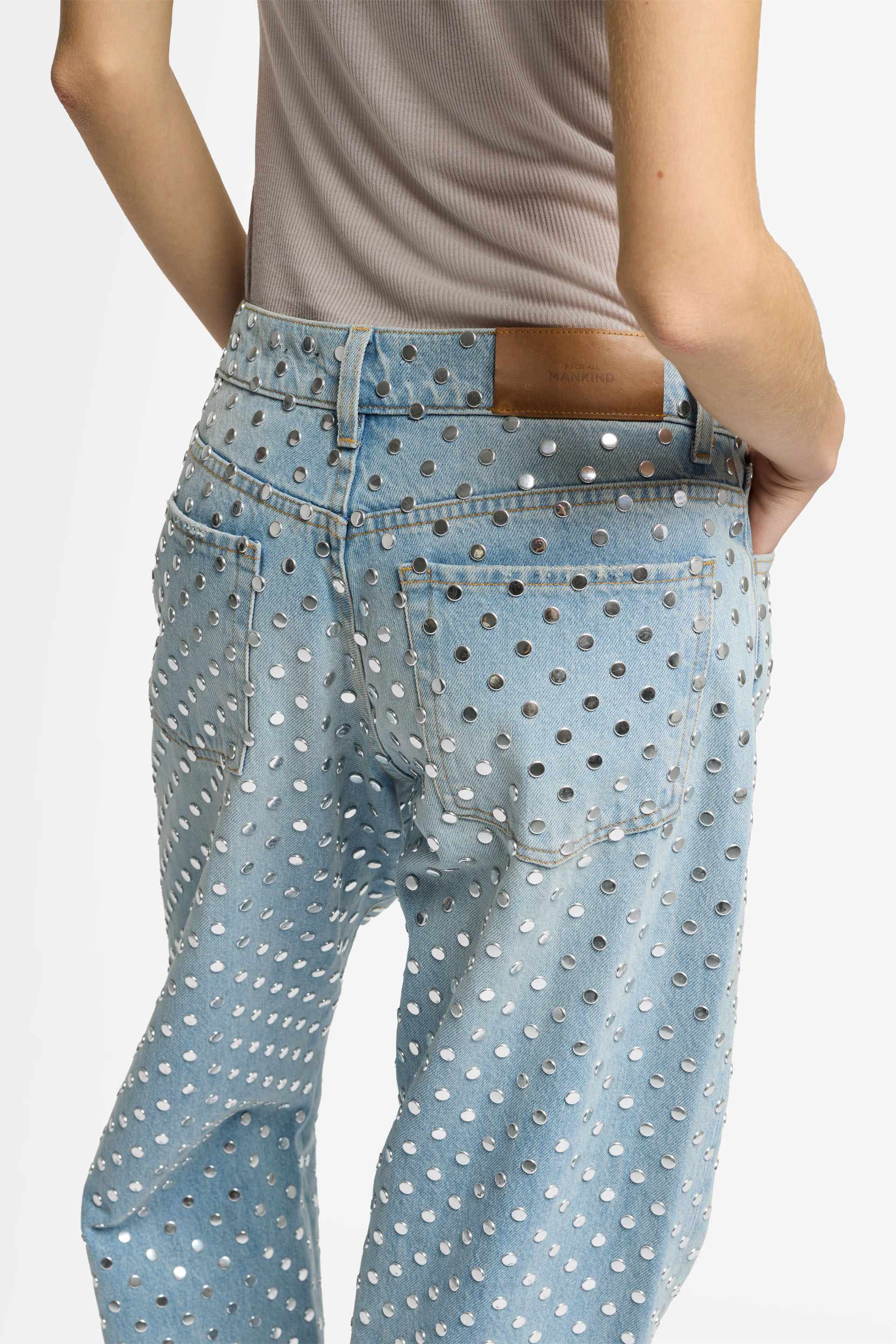 Nuestros vaqueros Straight Trouser son una versión refinada de una prenda imprescindible. Se han confeccionado en un tejido denim con efecto desteñido, y están adornados con gran cantidad de tachuelas. Combínalos con una camiseta sin mangas ajustadas o una blusa de inspiración vintage para crear un conjunto sin esfuerzo. Los vaqueros de 7 For All Mankind están confeccionados en tejidos de primera calidad.